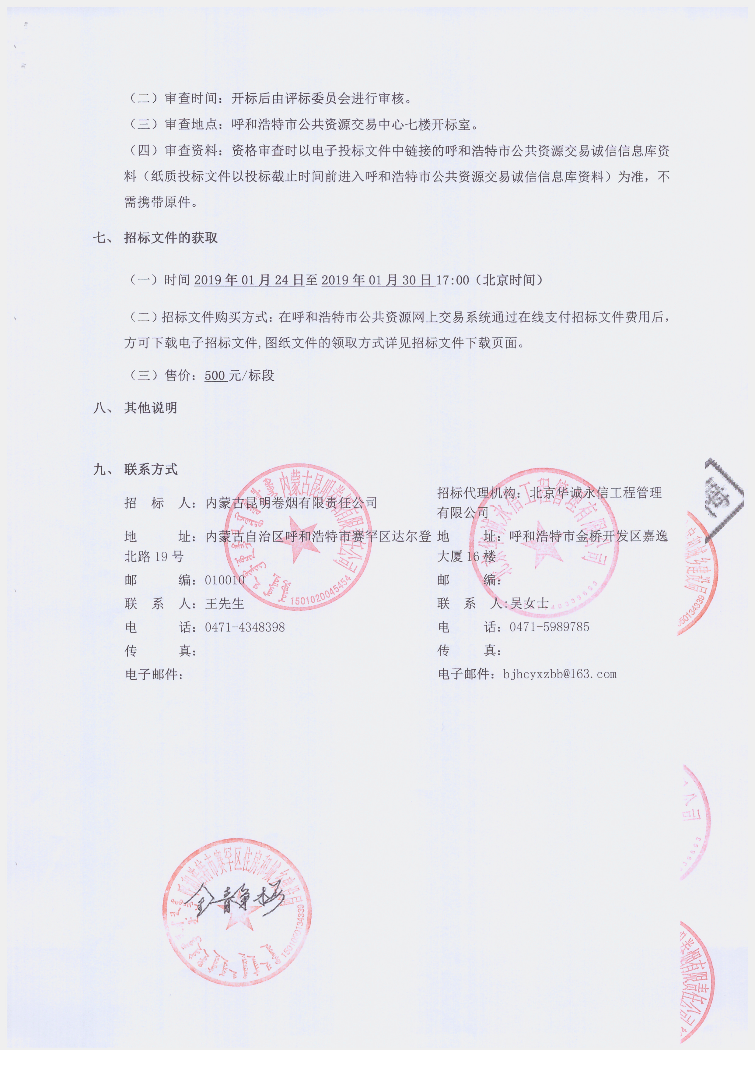 (三)审查地点:呼和浩特市公共资源交易中心七楼开标室。