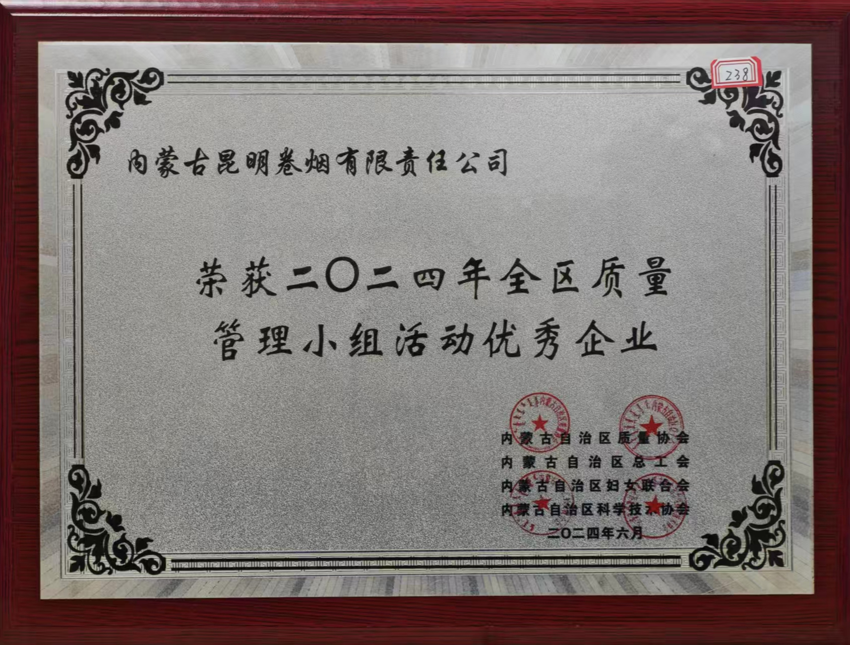 2024年全区质量管理小组优秀企业