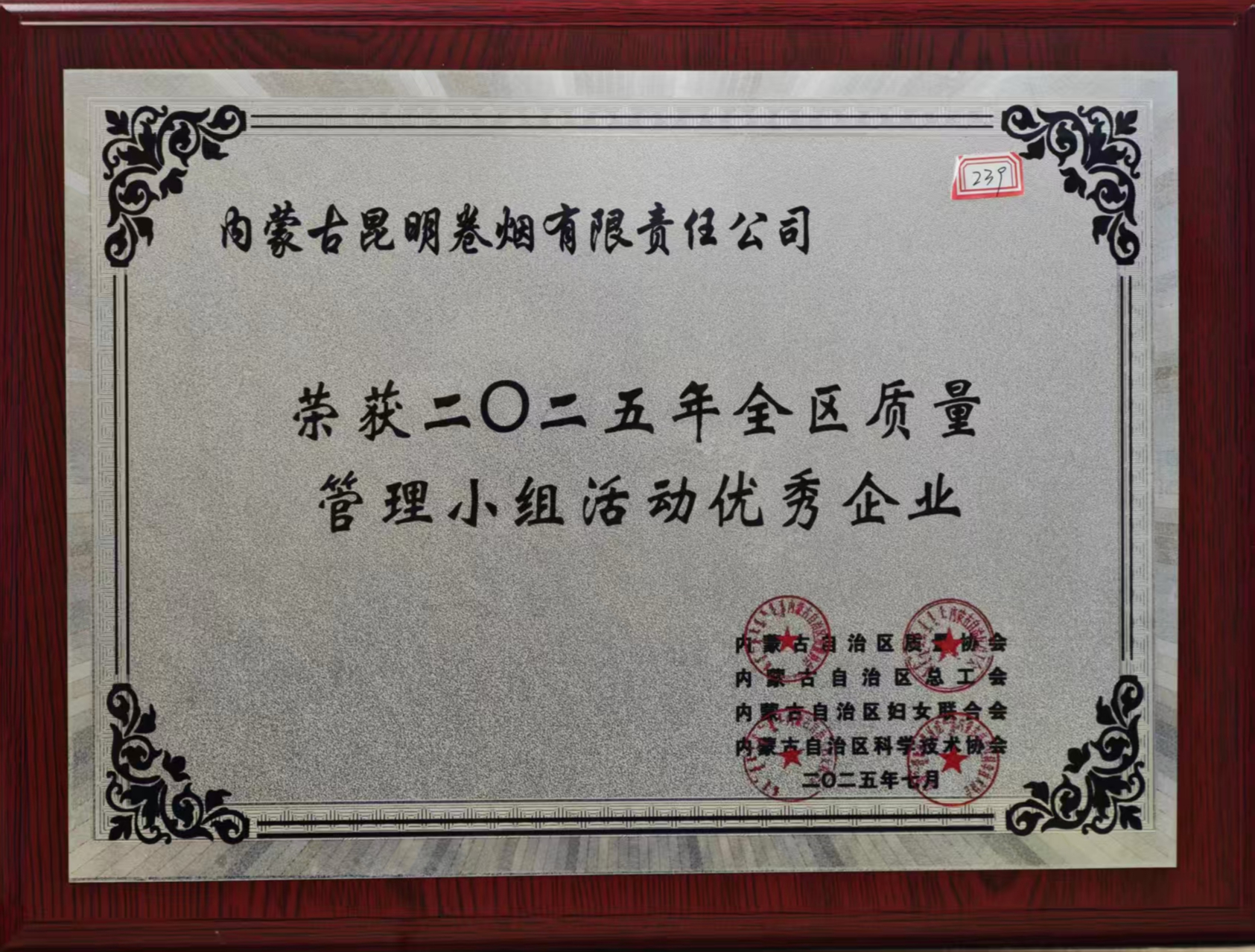 2025年全区质量管理小组优秀企业